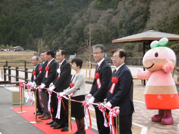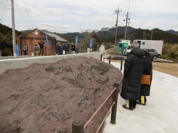 丹波竜の里完成式典が行われました! 平成29年4月1日丹波市山南町上滝の「元気村かみくげ(丹波竜化石発見現地」におきまして、丹波竜の里完成式典が行われ、新たに整備された遊歩道や化石産状モニュメントのお披露目がされました。 遊歩道テープカット 化石産状モニュメント(丹波竜の化石発掘時の状況が再現されています。) また、ちーたんの館に新たに恐竜全身骨格模型(プロバクトロサウルス)が加わり展示内容が更に充実していますので、是非ご来訪ください。