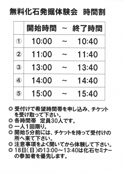 注意事項:事前に受付で希望時間帯を申込みチケットを受け取ってください。また、希望時間の開始5分前までには受付まで集合してください。